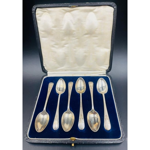 A Boxed set of six silver teaspoons by M & R Ltd for Sheffield 1921