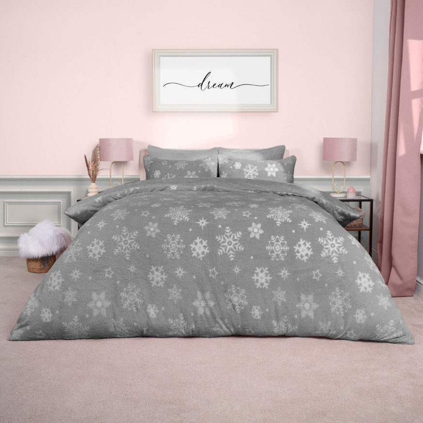 OHS Snowflake Teddy Duvet Set Grey