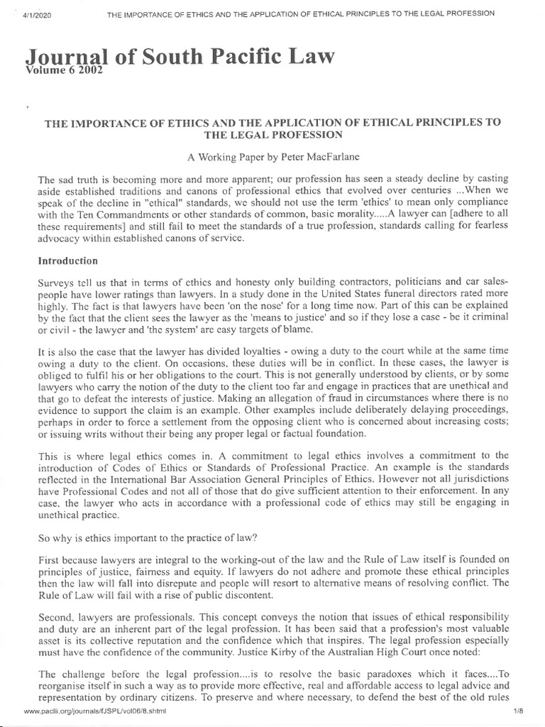 Ethics of Legal ProfessionImportance Journal SPL PDF Lawyer