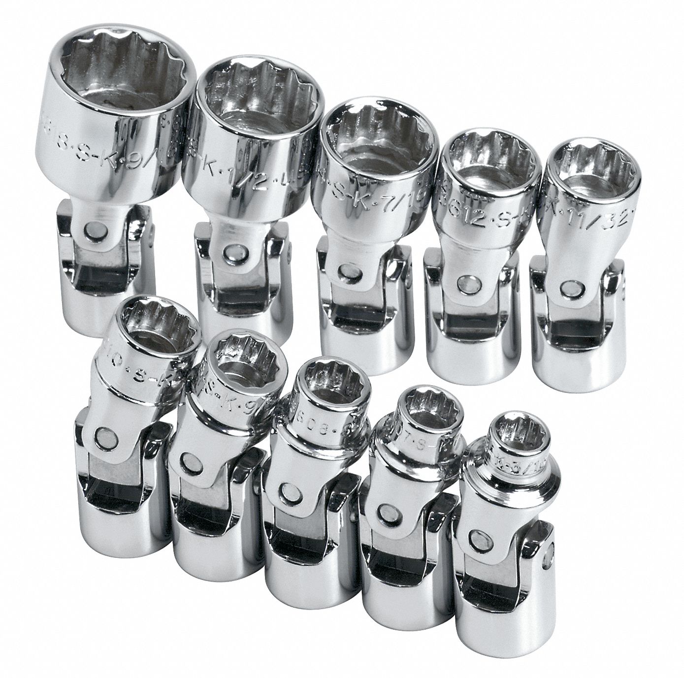 SK PROFESSIONAL TOOLS Socket Set, Socket Size Range 3/16 in to 9/16 in