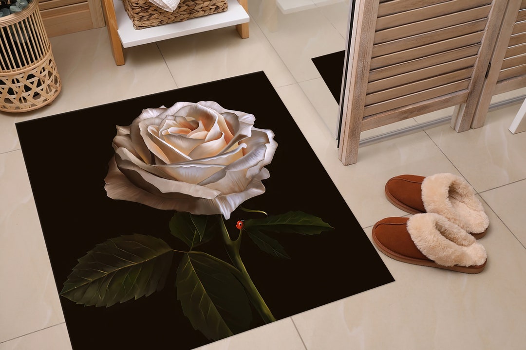 White Rose Rug, Ladybug Rug, Modern Rug, Botanical Rug, Gift Rug, Salon