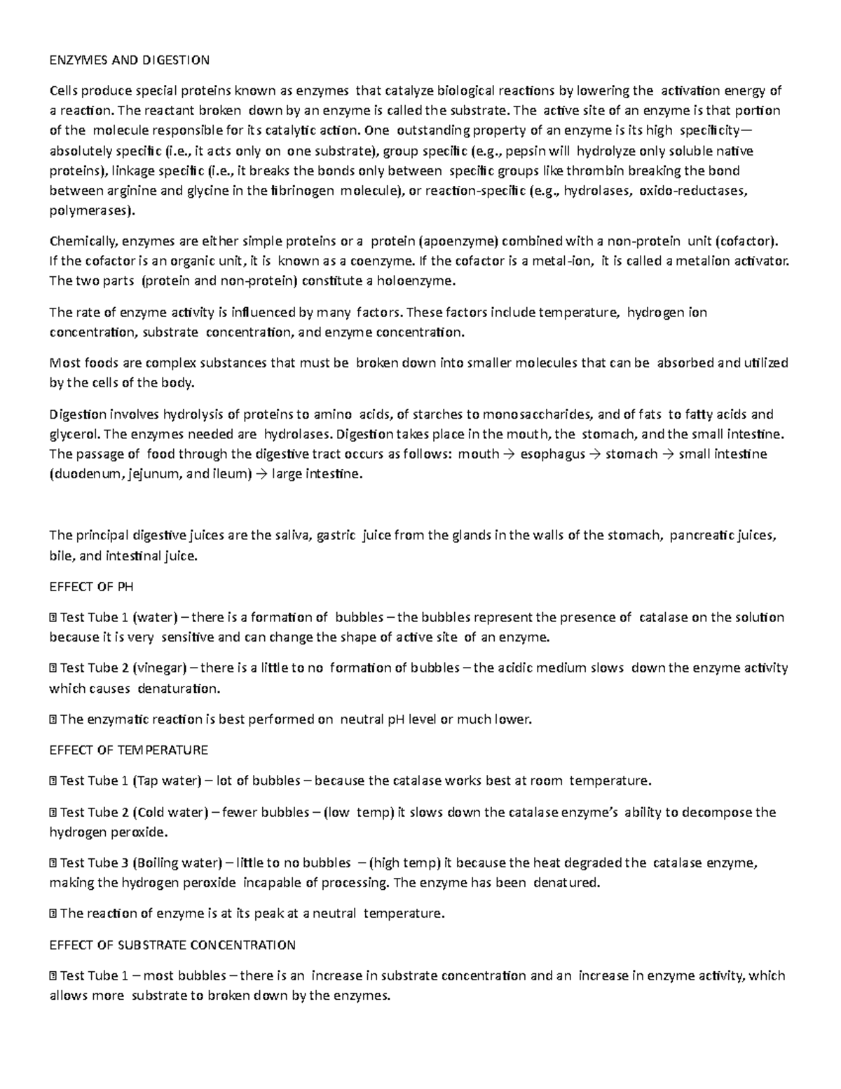 Enzymes AND Digestion ENZYMES AND DIGESTION Cells produce special