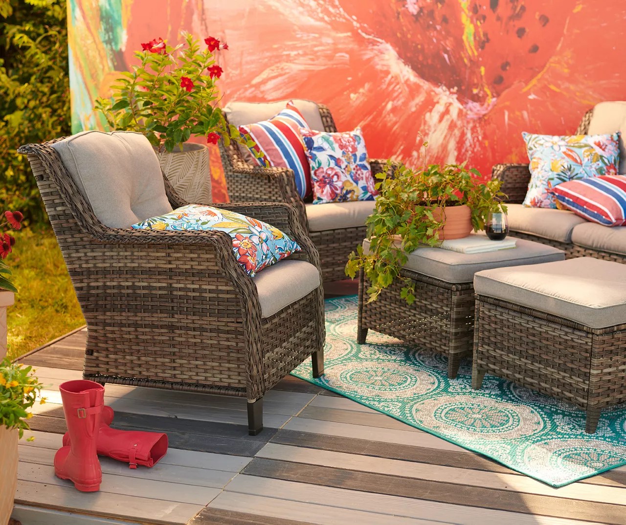 Rockbridge Gray 5Piece AllWeather Wicker Cushioned Patio Seating Set