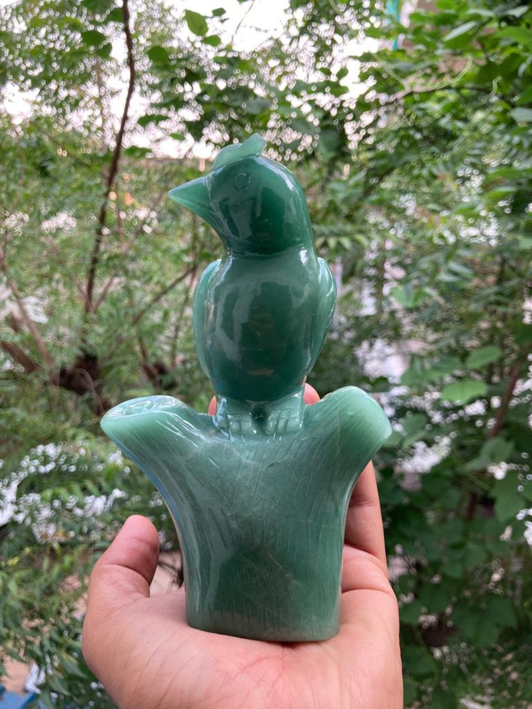 Green Jade Bird Carving Crystal Bird Carved Bird Statue Carved Crystal