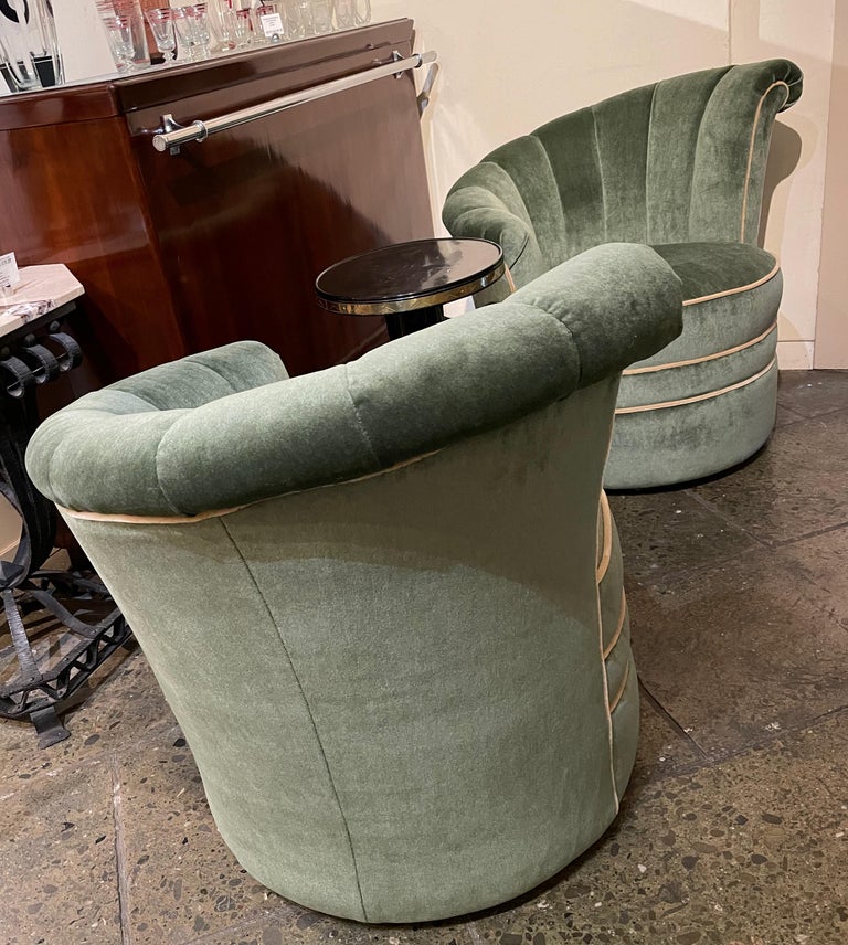 Art Deco Channel Back Swivel Mohair Chairs at 1stDibs