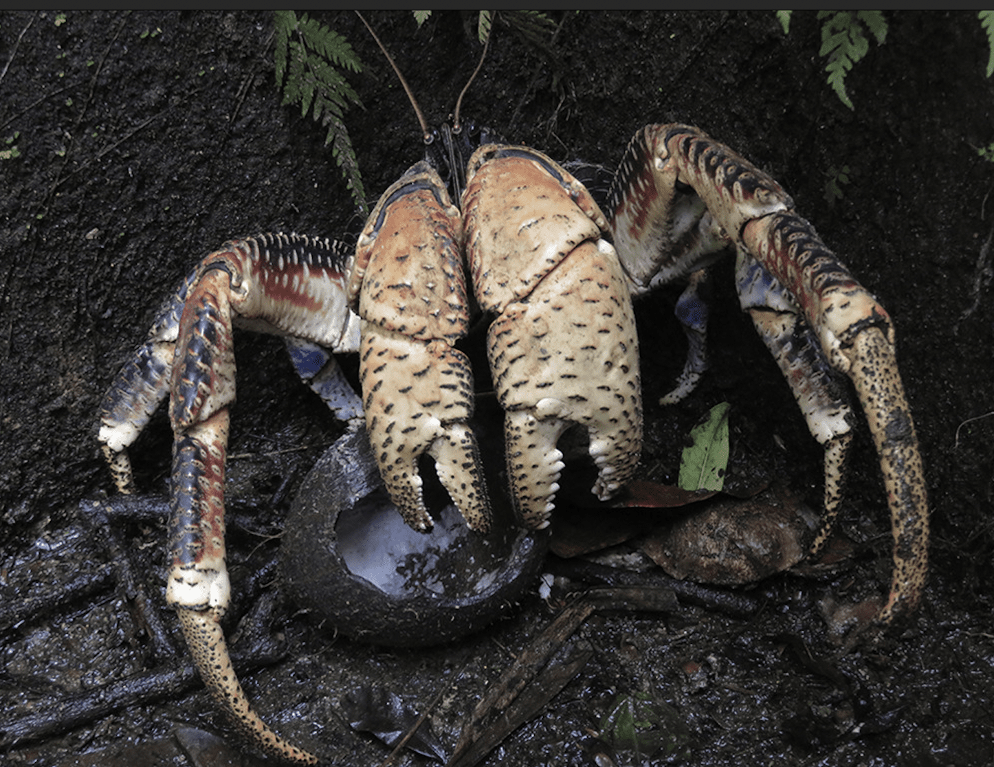 Largest Land Arthropod Coconut Crab Coconut Crab Cracking Coconut They've been known to lift more than 30 kilograms and earn their names by cracking into coconuts to eat. — did you know there's a crab that can crack open coconuts? With their powerful claws, coconut crabs grip the coconut firmly, exerting immense pressure until the hard shell succumbs to their strength. They use their claws to fight and. Coconut Crab Cracking Coconut.