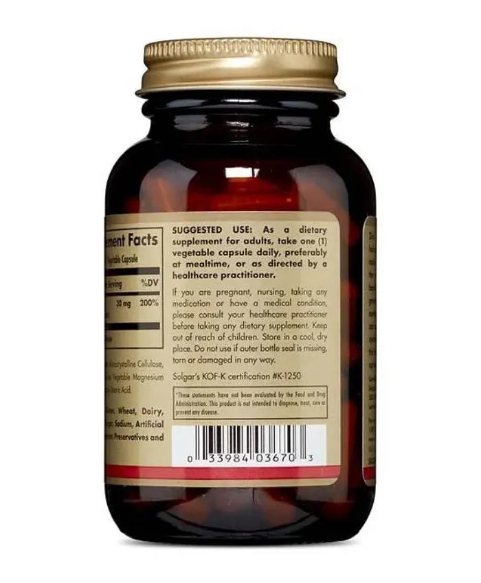 SOLGAR Zinc Citrate 30 MG Dietary Supplement 100 Vegetable Capsules