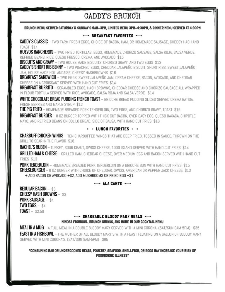 Menu Caddy's Kitchen and Cocktails