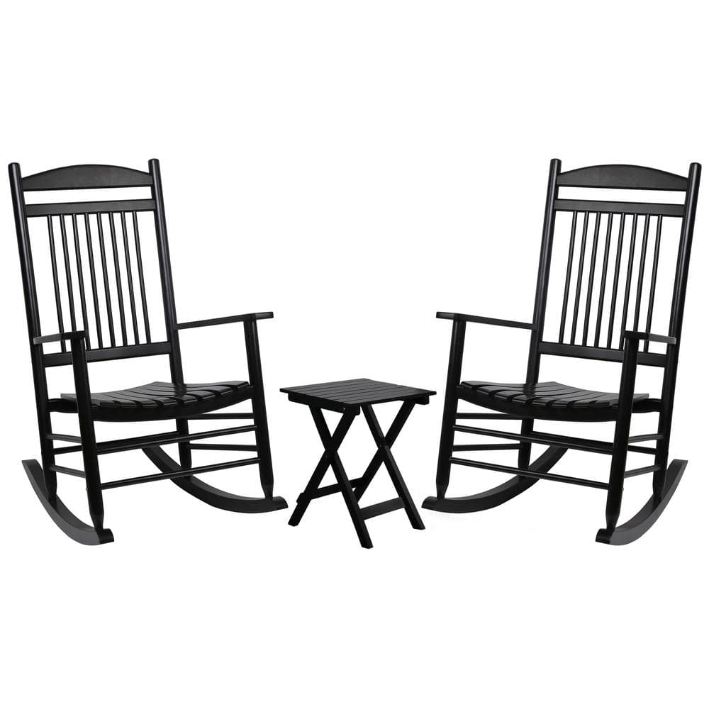 VEIKOUS Black 3Pieces Wooden Patio Outdoor Rocking Chair Set rockerset