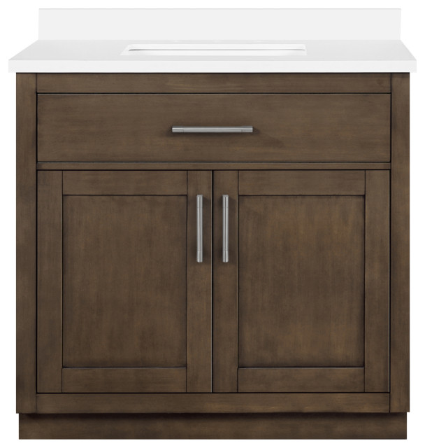 Ove Decors Bailey 36" Single Sink Vanity, Driftwood Oak With Hardware Farmhouse Bathroom Ove Bailey Vanity Bailey vanity available in white, antique oak, blue lagoon or almond latte finish. High quality engineered quartz countertop houses two white. Freestanding, solid wood bathroom vanity with engineered quartz countertop. Freestanding, solid wood bathroom vanity with engineered quartz countertop. Bath vanity in almond latte with engineered stone vanity top in white with white basin. High quality engineered quartz countertop houses.. Ove Bailey Vanity.