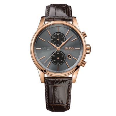 Hugo Boss Jet men's rose goldplated leather strap watch Ernest Jones