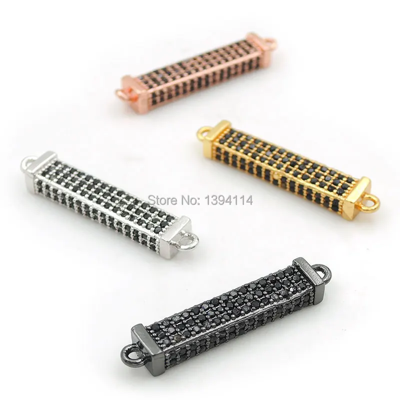 25*5*3mm Micro Pave Black CZ Bar Connector Fit For Men And Women Making