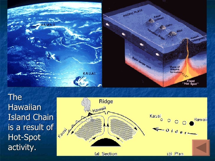 The current eruption of mauna loa on the big island of hawaii is part of a long history of volcanic activity that formed the hawaiian chain and is a vivid demonstration that the giant. This causes magma to gusher out of volcanoes as lava like this. The islands of hawai'i are still being shaped by shifts of its tectonic plate, the pacific plate. Scientists have used this seamount chain to calculate tectonic plate displacement and the rate of plate movement, as well as the relative ages of the islands of hawai'i. The youngest seamount of the hawaiian chain is loihi, which presently is erupting from its summit at a depth of 1000. Hawaii is geologically a unique place on earth because it is caused by a 'hot spot.' most islands are found at tectonic plate boundaries either.