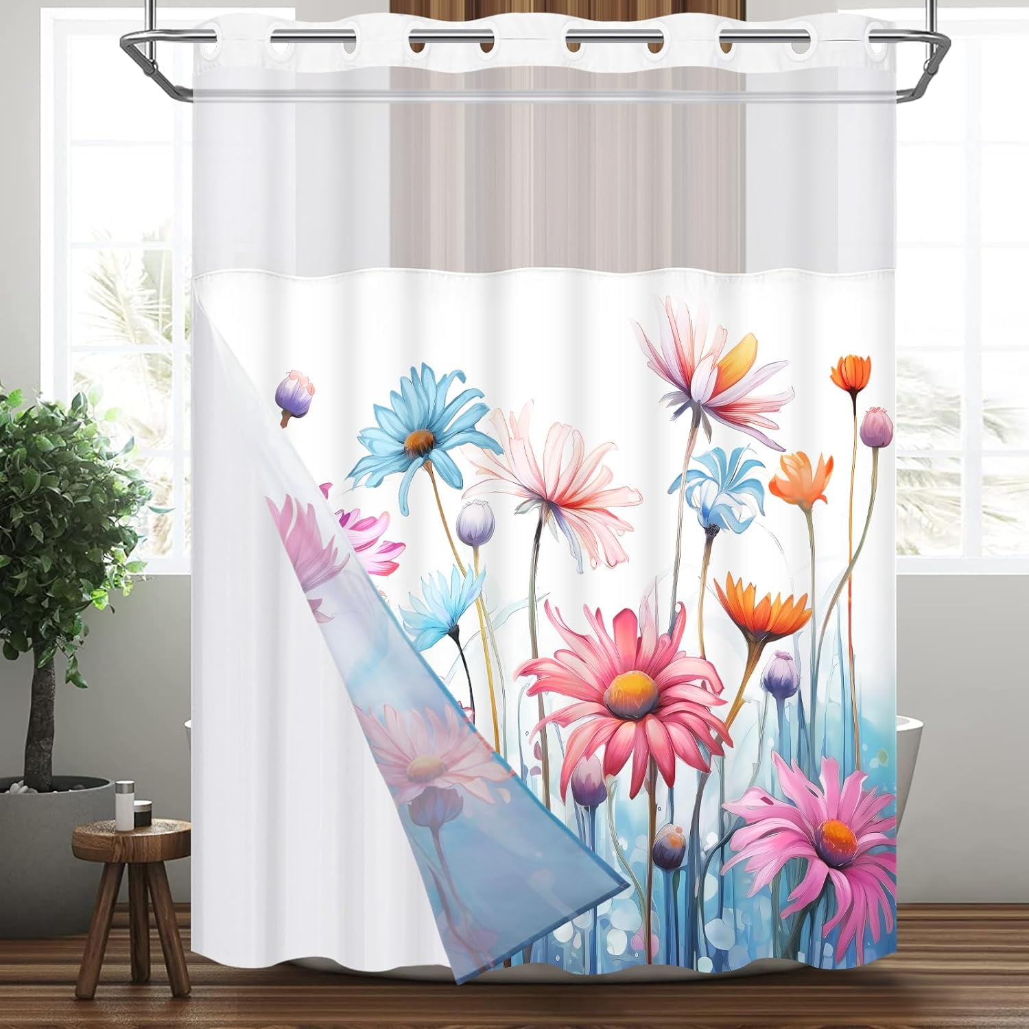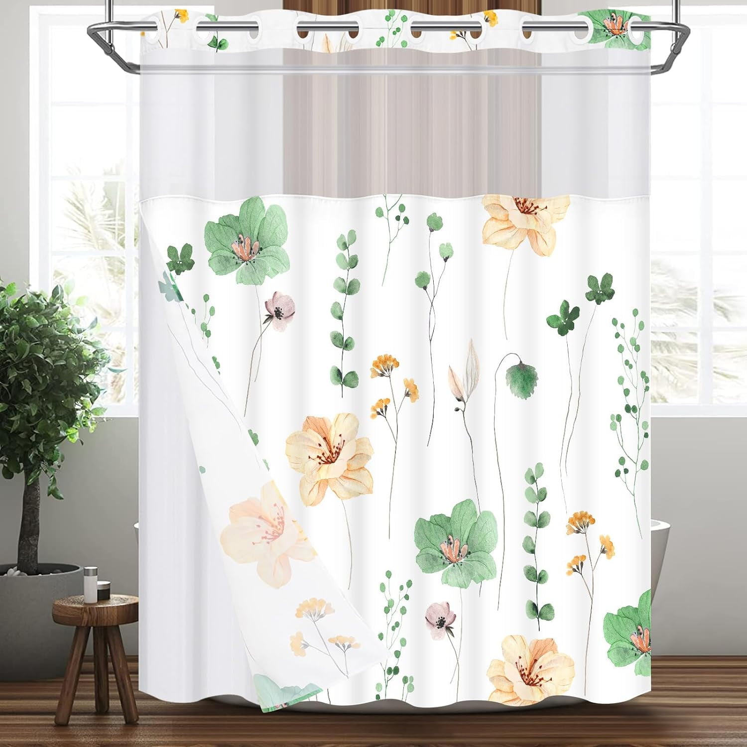 Hookless Floral Shower Curtain with Fabric Liner Hookless Shower Curtain With Liner Easy to use and install. refresh your bathroom in seconds with a new hookless shower curtain, available in a variety of styles, fabrics and colors. 1m+ visitors in the past month shop wayfair for the best hookless shower curtain with liner included. Enjoy free shipping on most stuff, even big stuff. Enjoy free shipping on most stuff, even. Hookless Shower Curtain With Liner.