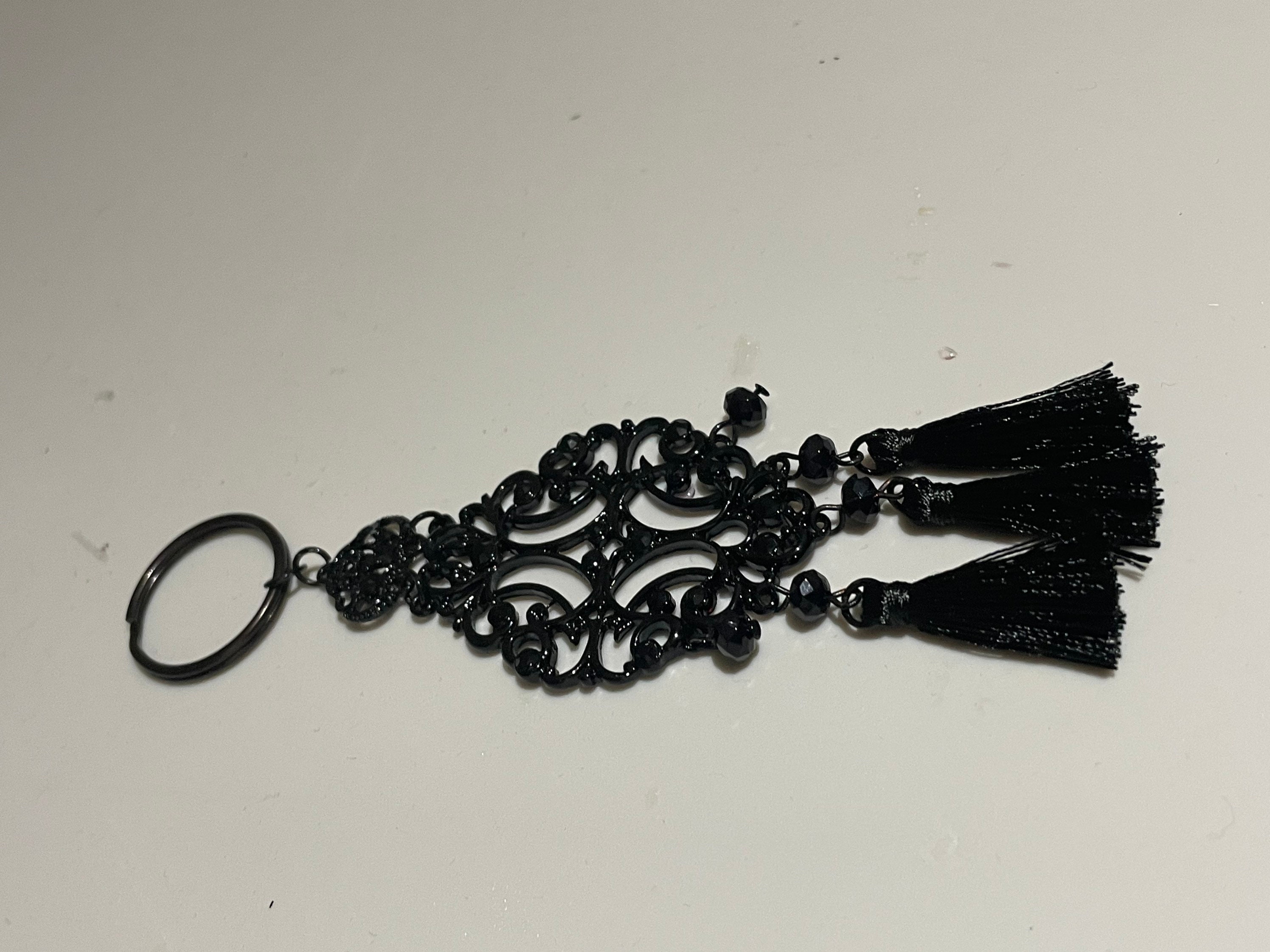 Black dangle tassel keychain handmade Etsy