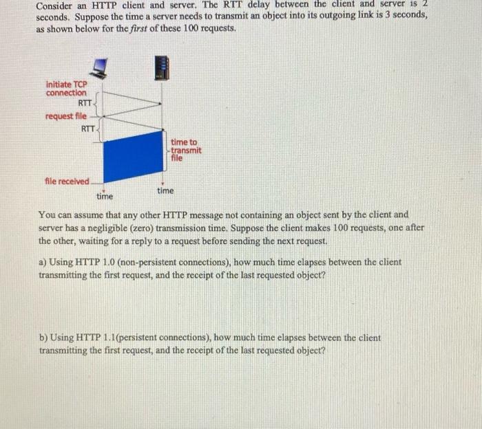 Solved Consider an HTTP client and server. The RTT delay