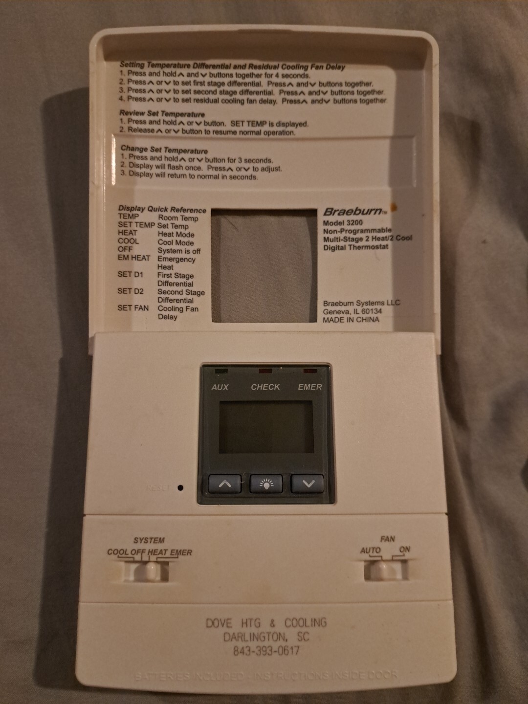 Braeburn Model 3200 Non Programmable Digital Thermostat Pre Owned eBay
