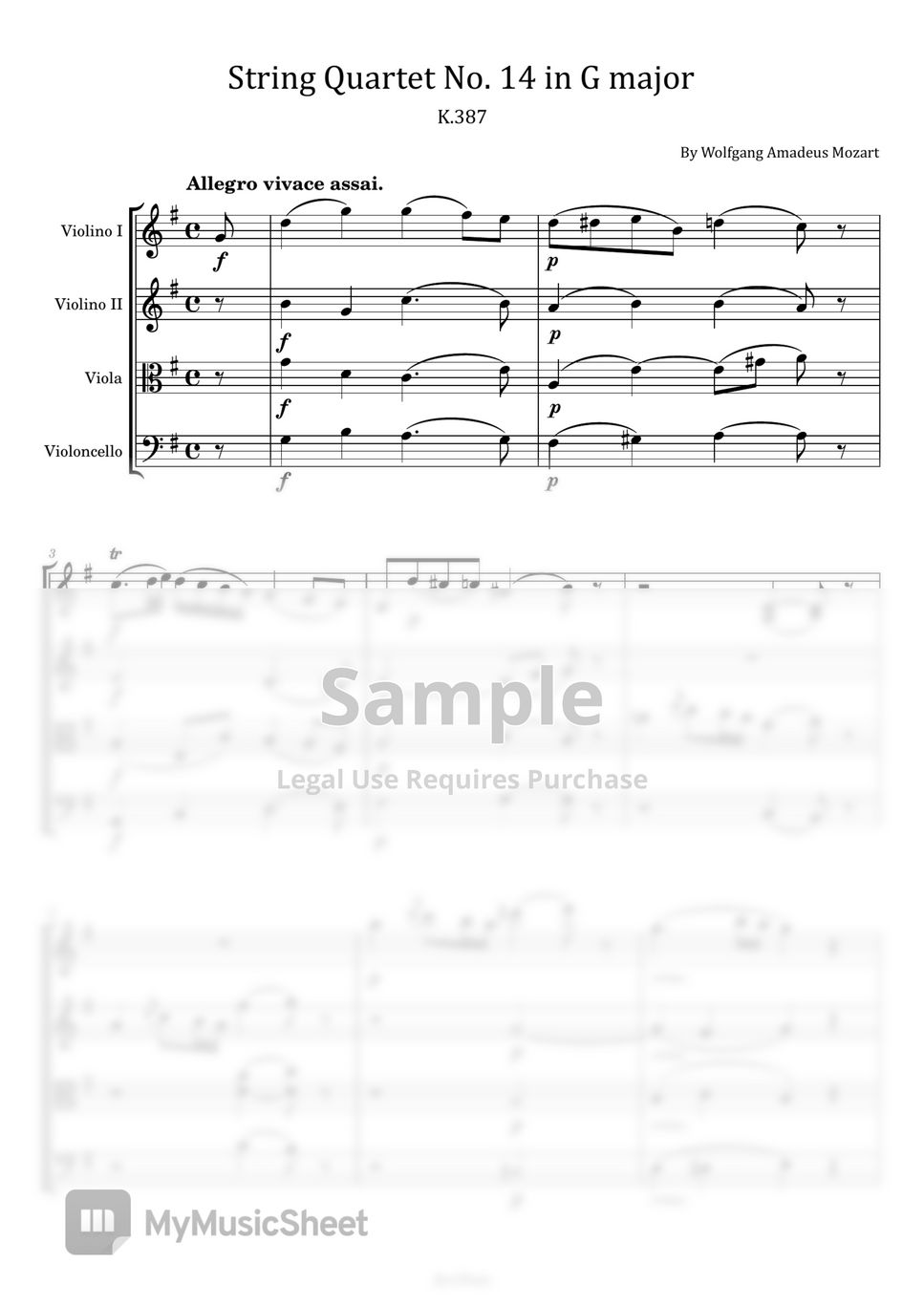 Wolfgang Amadeus Mozart String Quartet No.14 in G major K.387