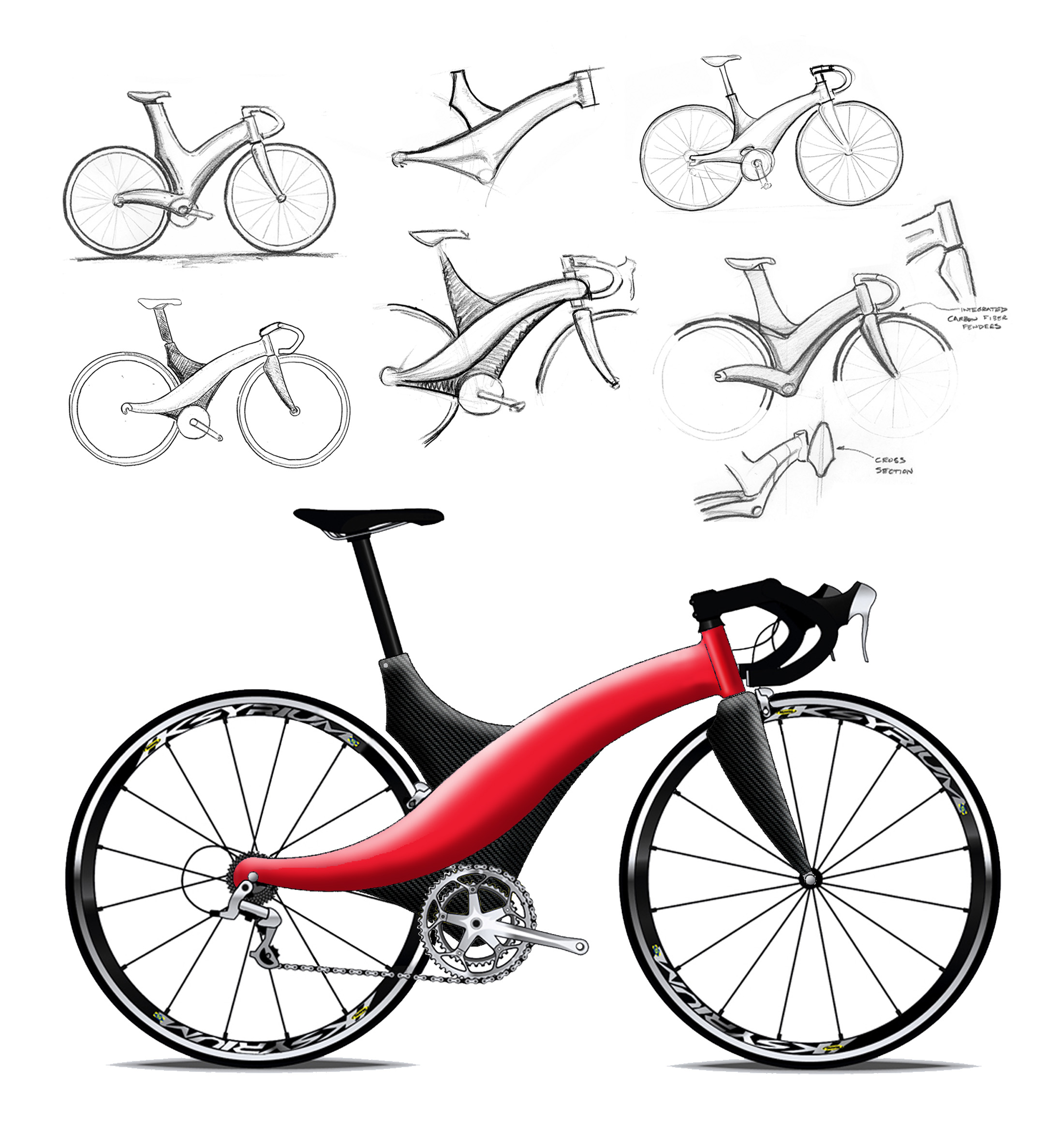 Bicycle sketches and renderings by James Thomas at