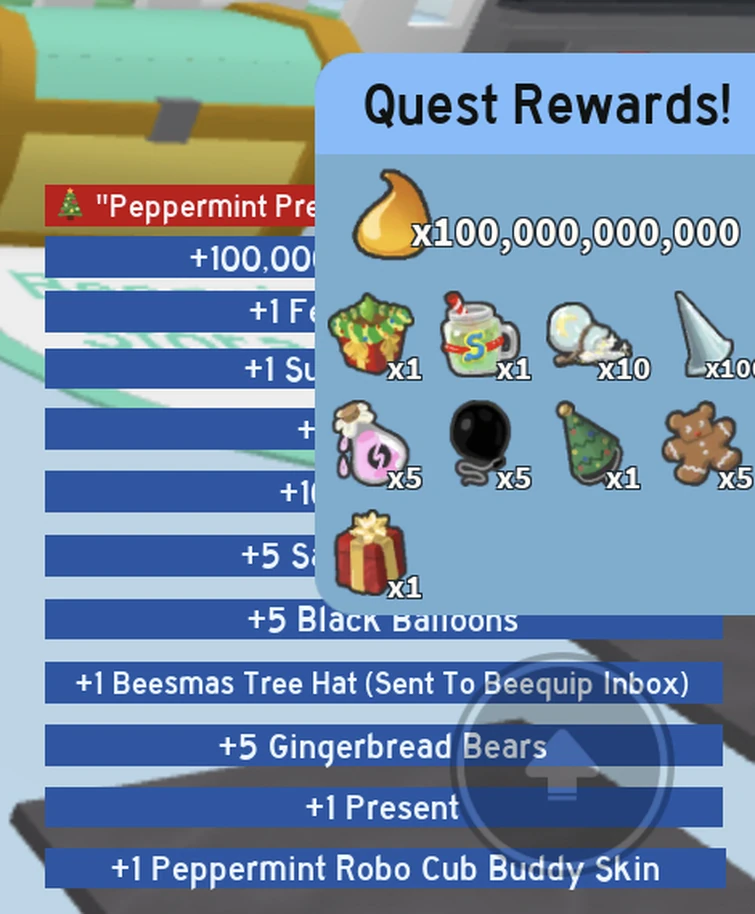 Bee Bears Quest 20 Rewards! Peppermint Robo Cub! Bee Swarm Simulator Peppermint Antennas Bee Swarm (like.maybe your gifted vector?) your boost token counts are a bit low. The peppermint antennas are a level 7 beesmas beequip. you can probably find a better bee to use peppermint antennas on than honey bee. here, you will find the minty gift box on a ledge. peppermint antennas beequip is one of the items you can. Peppermint Antennas Bee Swarm.