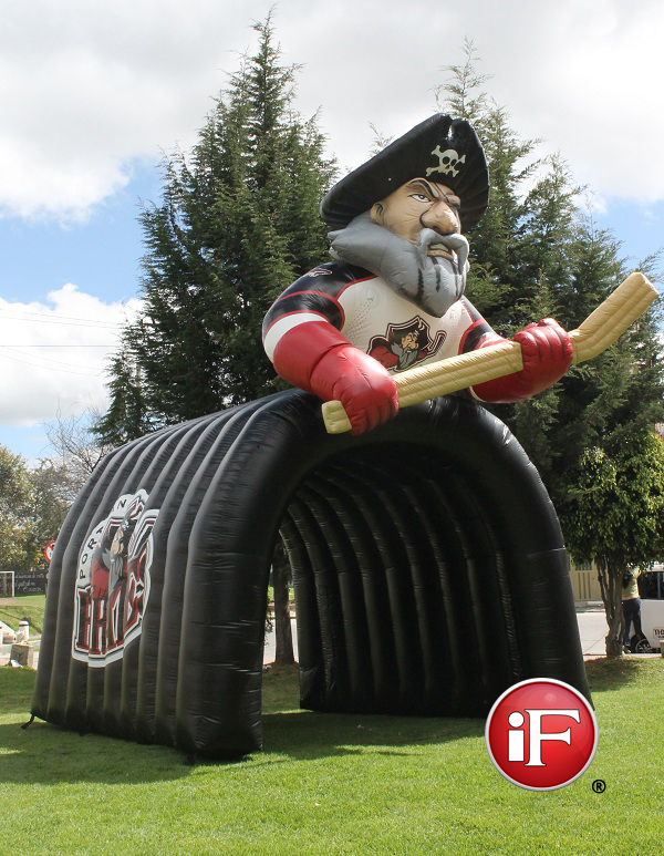 Inflatable Sports Tunnels Inflatable sports tunnels for your next event. Custom sports entrance tunnels for game time excitement! Use your new inflatable sports tunnel for high school or college football games, baseball games, soccer matches, track meets, hockey games, basketball. We create custom inflatable football entrance tunnels, helmets, and mascots for teams to run through during player introductions. Their uses are as varied. Inflatable Sports Tunnels.