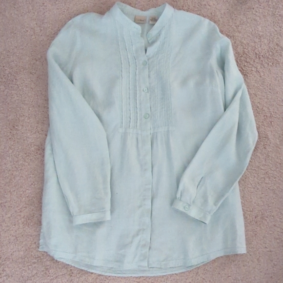 L.L. Bean Tops Llbean Linen Top Womens Size M Light Mint Green Button Down Pleated Sh Poshmark