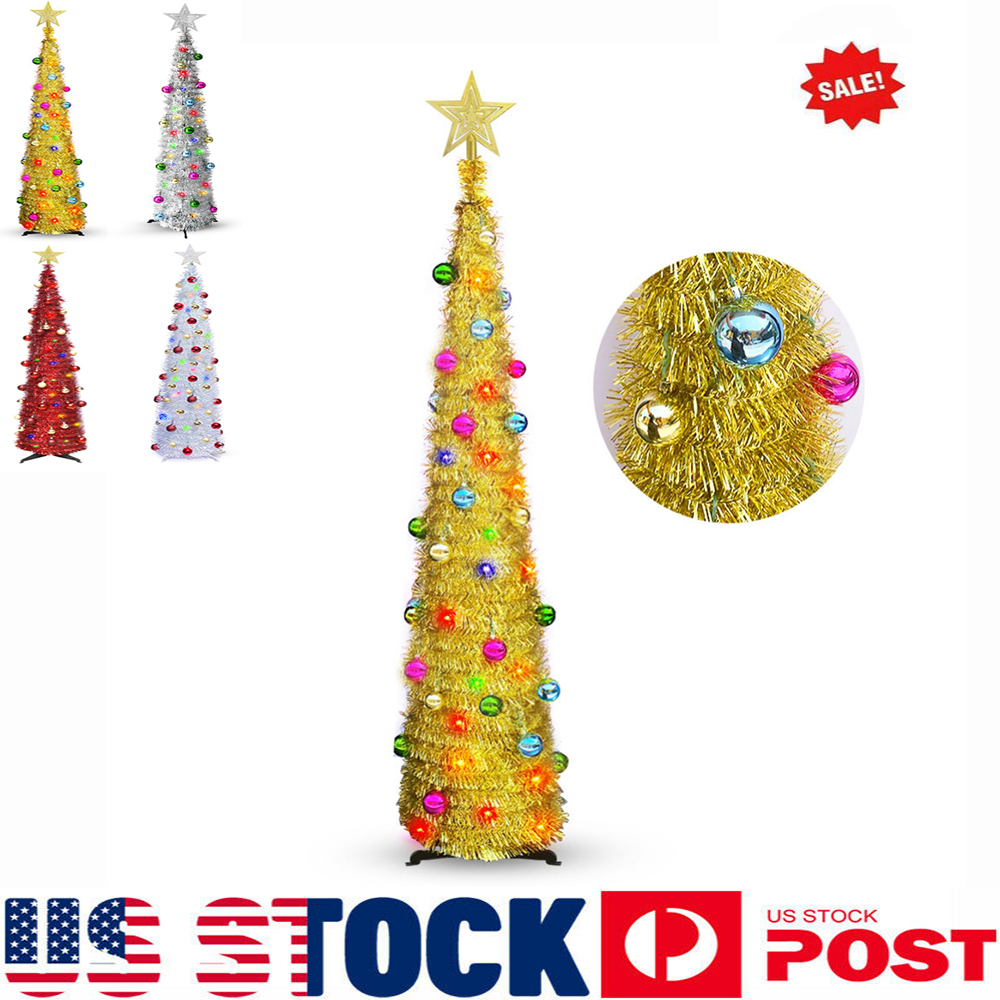 5FT Pop Up Christmas Tinsel Tree with Lights Collapsible Colorful
