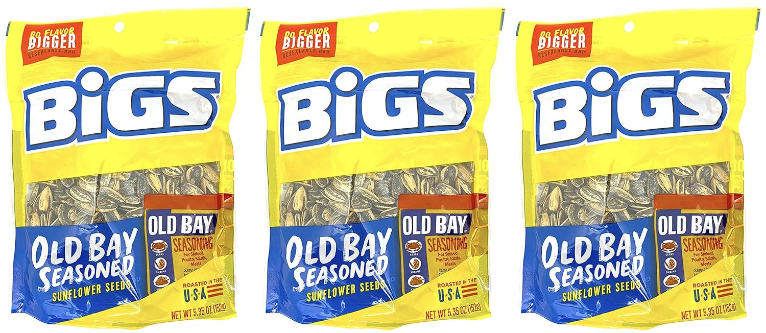 Bigs Sunflower Seeds Pack of 3 Old Bay Seasoning Sunflower Seeds 5.35 Ounces