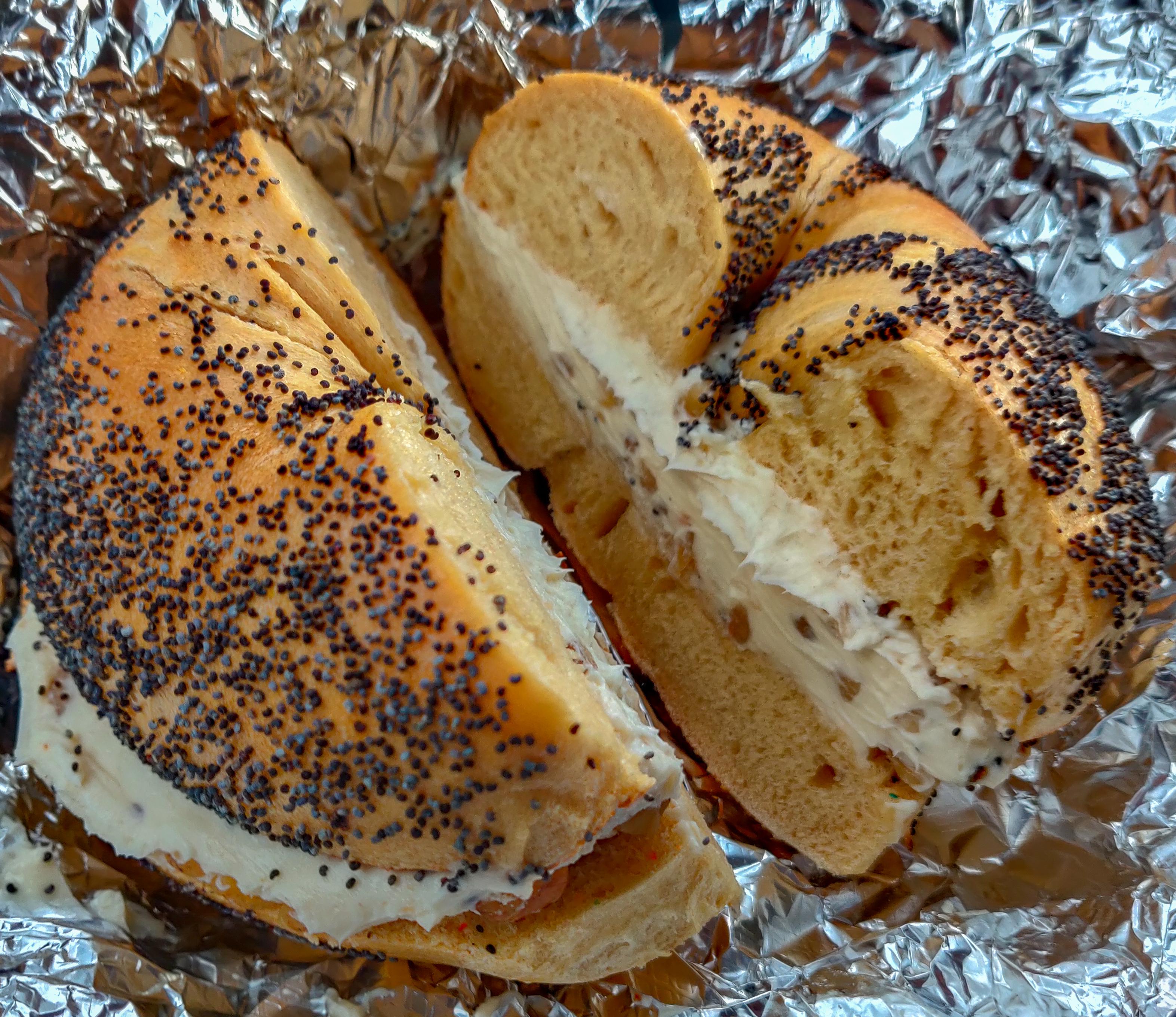 Poppy seed bagel with honey walnut cream cheese [OC] r/FoodPorn
