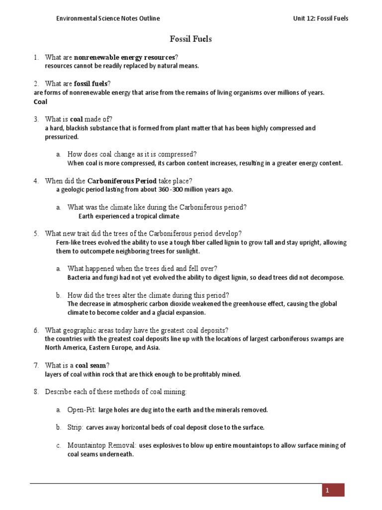 Fossil Fuels Notes Outline PDF Hydraulic Fracturing Natural Gas