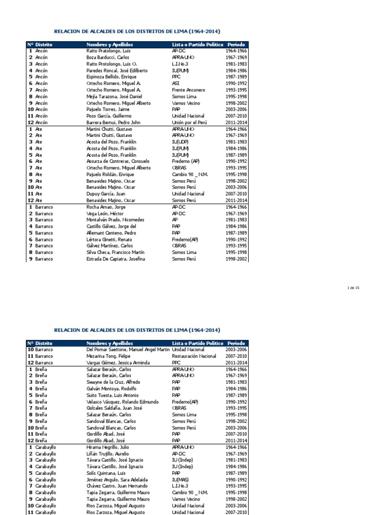 1963 2014 Alcaldes Distritales Lima PDF Gobierno Movimientos