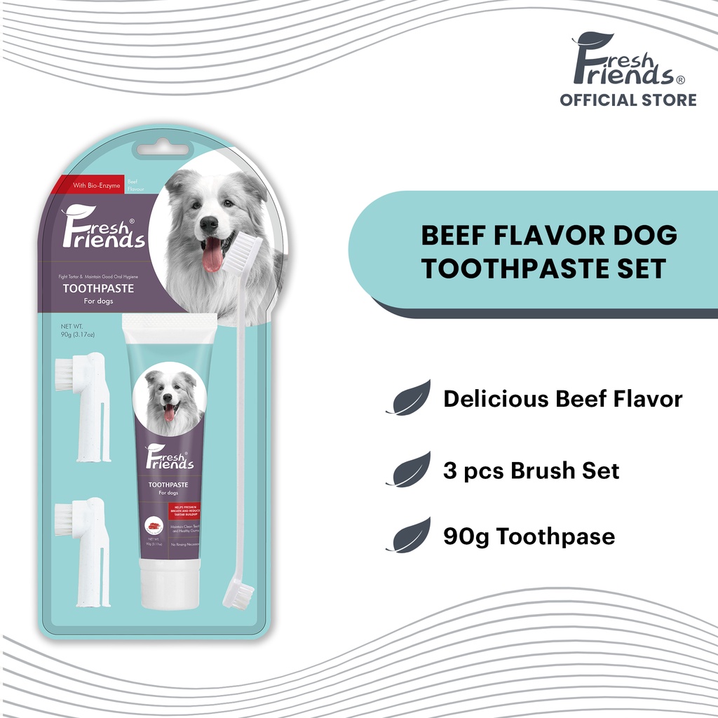 Fresh Friends Dog Dental Set 90g Toothpaste Beef flavored + 3 Brush Set(fake nails) Shopee
