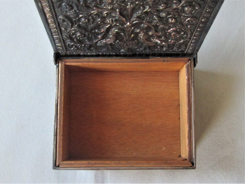 Ornate Metal Trinket Box Wood Lined Vintage Etsy