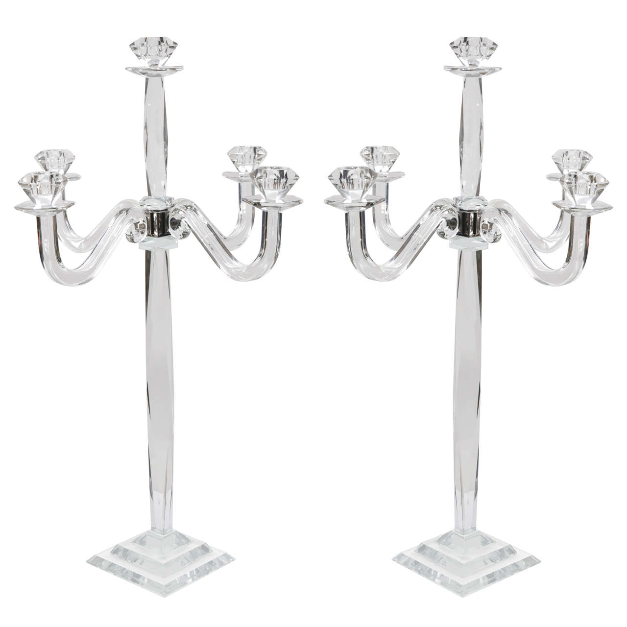 Pair of Tall Crystal 5Lite Candelabras at 1stdibs