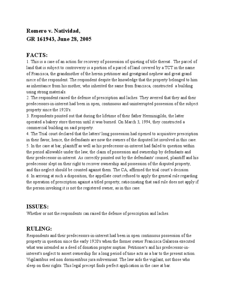 SC Upholds Prescription Defense in Land Dispute PDF Laches (Equity