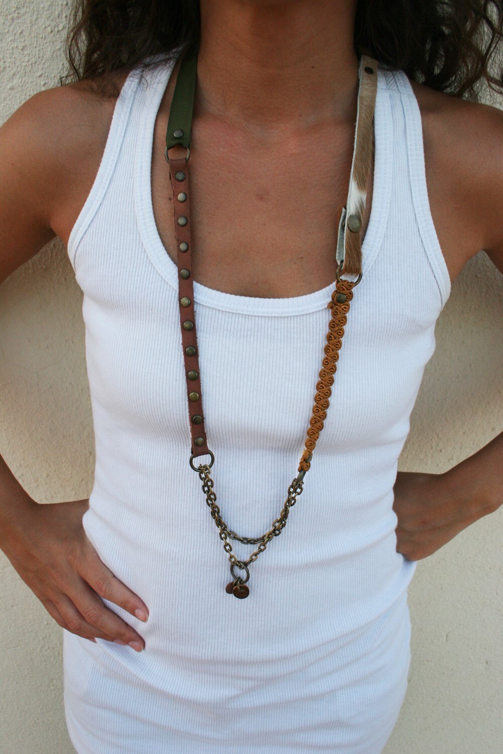 Necklace Belt Fabric Necklace Leather BrassChains Upcycled