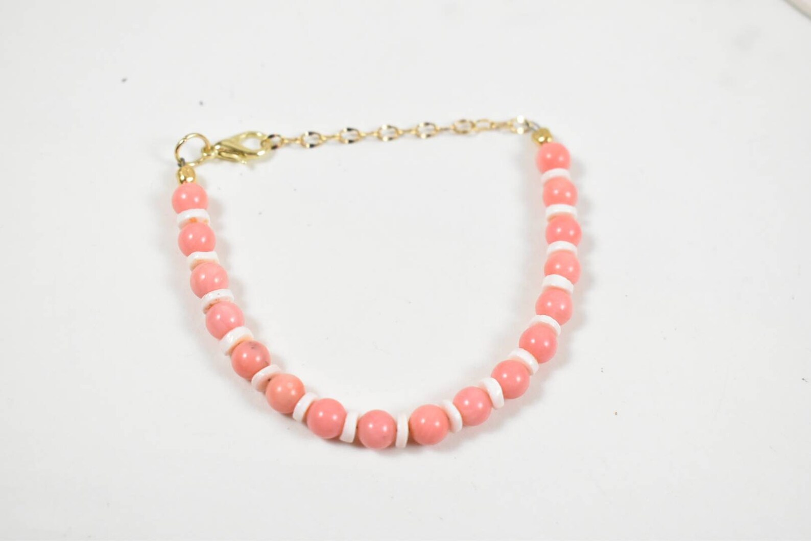Pink and White Beaded Bracelet Etsy