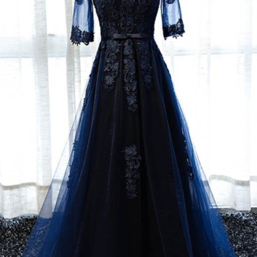 The Dark Blue Lace Dress And Sleeves Cut A Fine Beauty Dance Formal