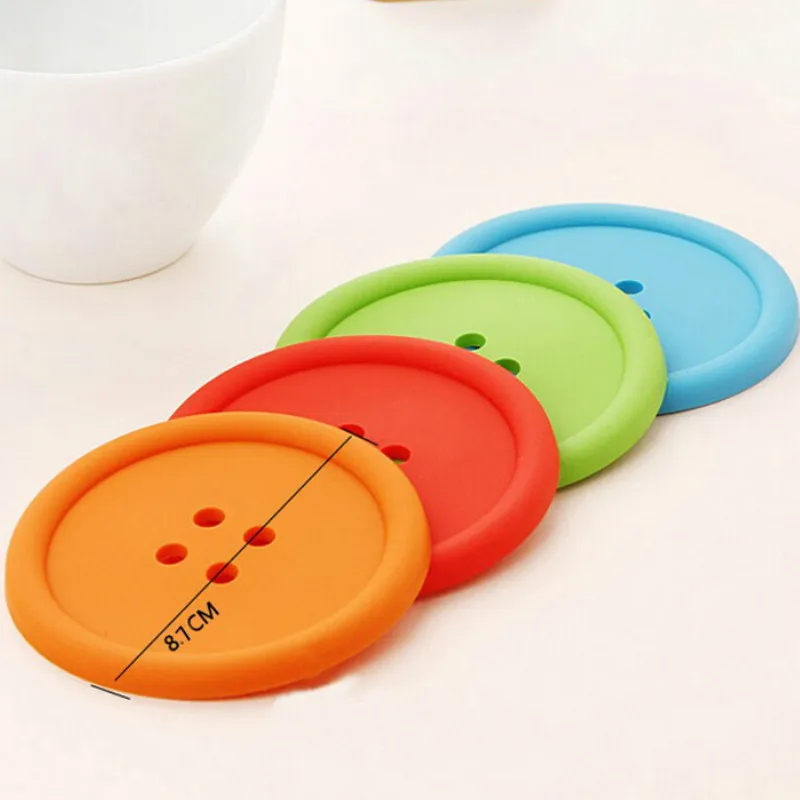eTya 2pcs Colorful Silicone Coasters Mats Cute Round Button Cup Mat Mug Holder Bar Table Decor