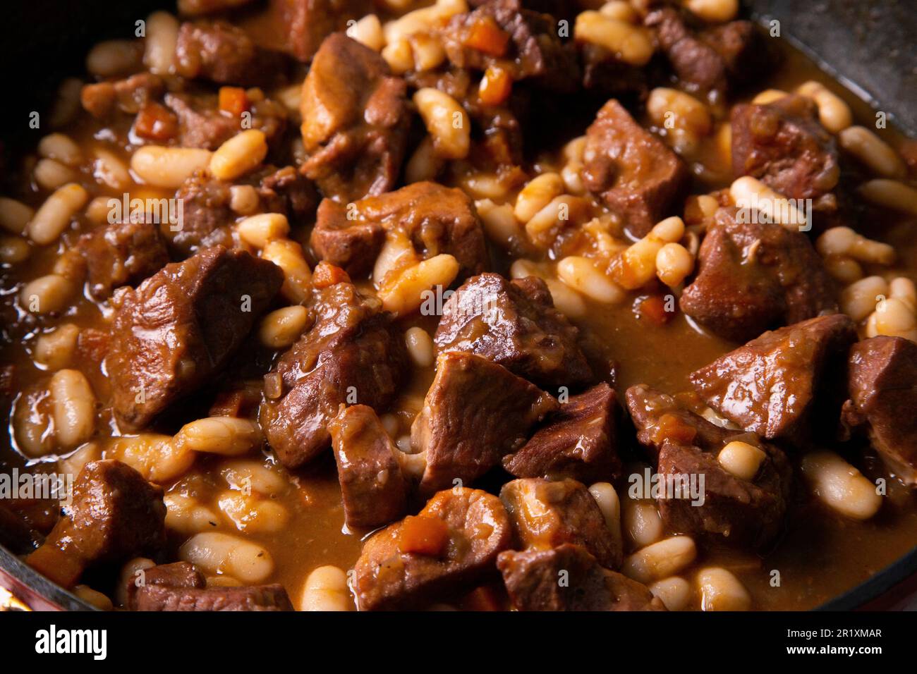 Beef stew with white beans. Traditional spanish tapa Stock Photo Alamy