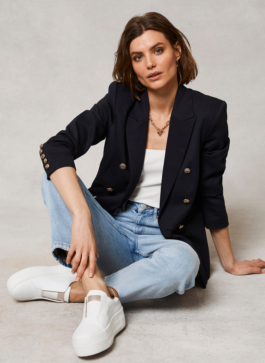 Navy Fitted Military Blazer Mint Velvet