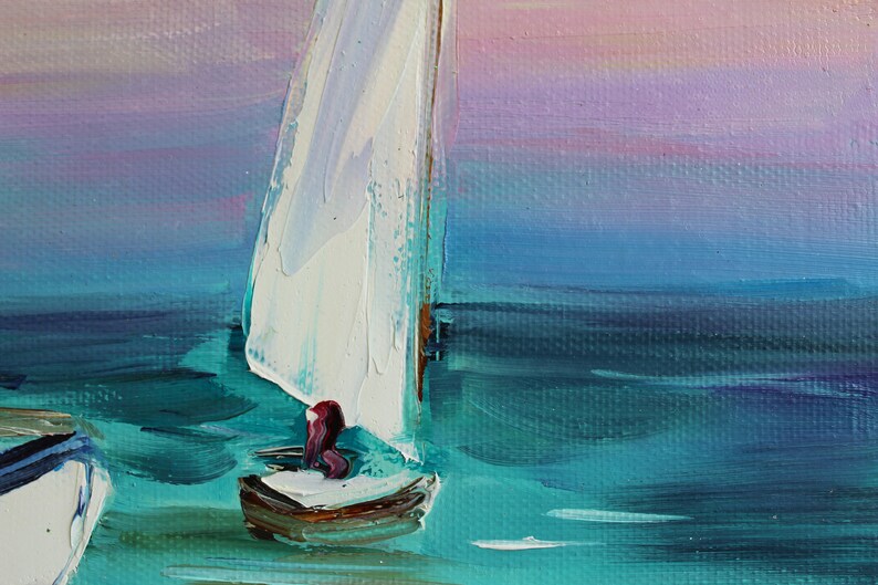 Sailboats oil painting on canvas Palette knife Impasto Sailing Etsy