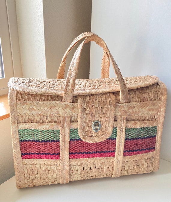 Vintage Mexican Woven Straw Tote/bag With Color Stripes Etsy Woven Straw Tote Bag Vintage nwt gorgeous vintage natural woven straw tote with a beautiful dark leather braided handle and trim, from inge sport. vintage nina ricci navy woven straw and red leather handbag, tote bag with logo. check out our vintage woven straw tote selection for the very best in unique or custom, handmade pieces from our. shop our vintage. Woven Straw Tote Bag Vintage.