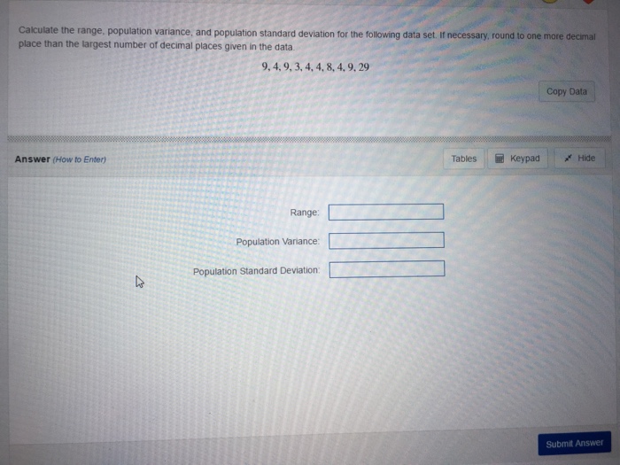 Solved Calculate the range, population variance, and