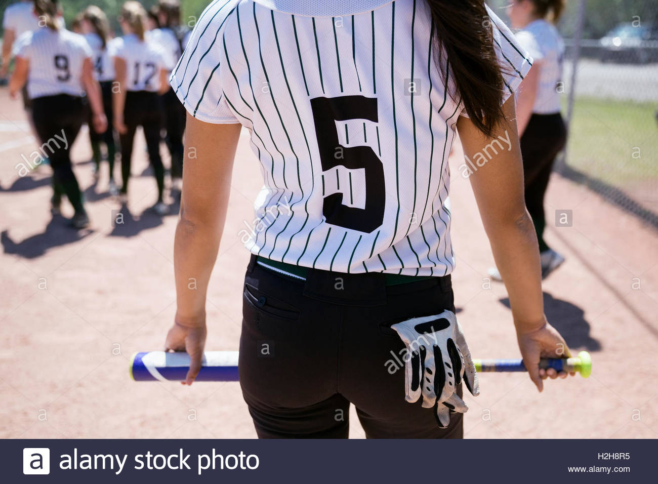 Middle school girl softball player holding bat Stock Photo Alamy