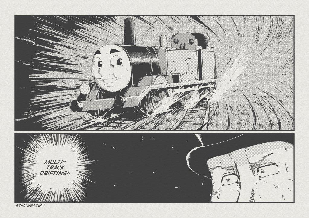 Multi track drifting is a meme based on a parody of initial d, a japanese anime series about street racing. It involves trains drifting on two tracks and. See examples from various media,. It involves a train doing a.