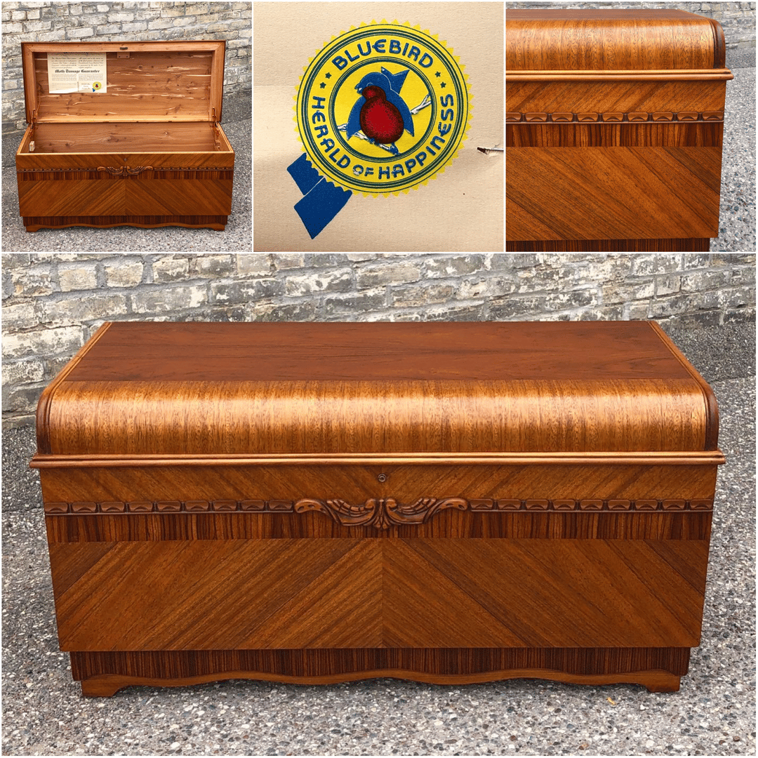 BLUEBIRD Cedar Chest with Original Warranty Bluebird Cedar Chest Value Cedar lined interior with walnut veneered exterior. However, if you deal with rare and unique. This chest features a hinged top and pinwheel design along the front made with wood veneers. A circa 1940s bluebird red cedar chest. Vintage (1930’s or 40’s) bluebird cedar chest by dillingham manufacturing company, sheboygan wi. “waterfall” top in good condition. But most chests, on. Bluebird Cedar Chest Value.