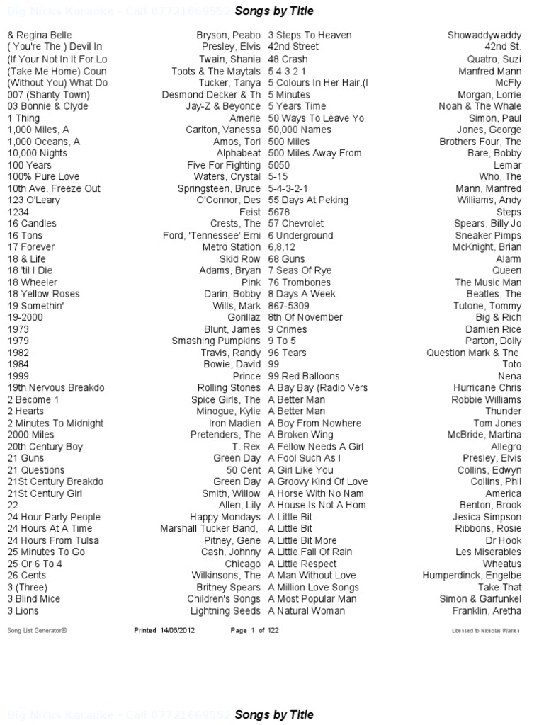 Song List by Title