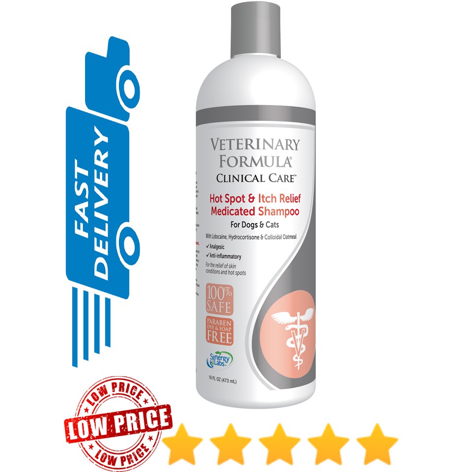 Synergy Labs VETERINARY FORMULA CLINICAL CARE HOT SPOT & ITCH RELIEF Veterinary Formula Medicated Shampoo If you're searching for the best dog shampoo for sensitive skin, veterinary formula clinical care's antiseptic and antifungal. Pet parents, check your dogs and cats' skin for hair loss, redness, or smelly. Support your pet's skin health with veterinary formula clinical care antiseptic and antifungal medicated shampoo. Veterinary Formula Medicated Shampoo.