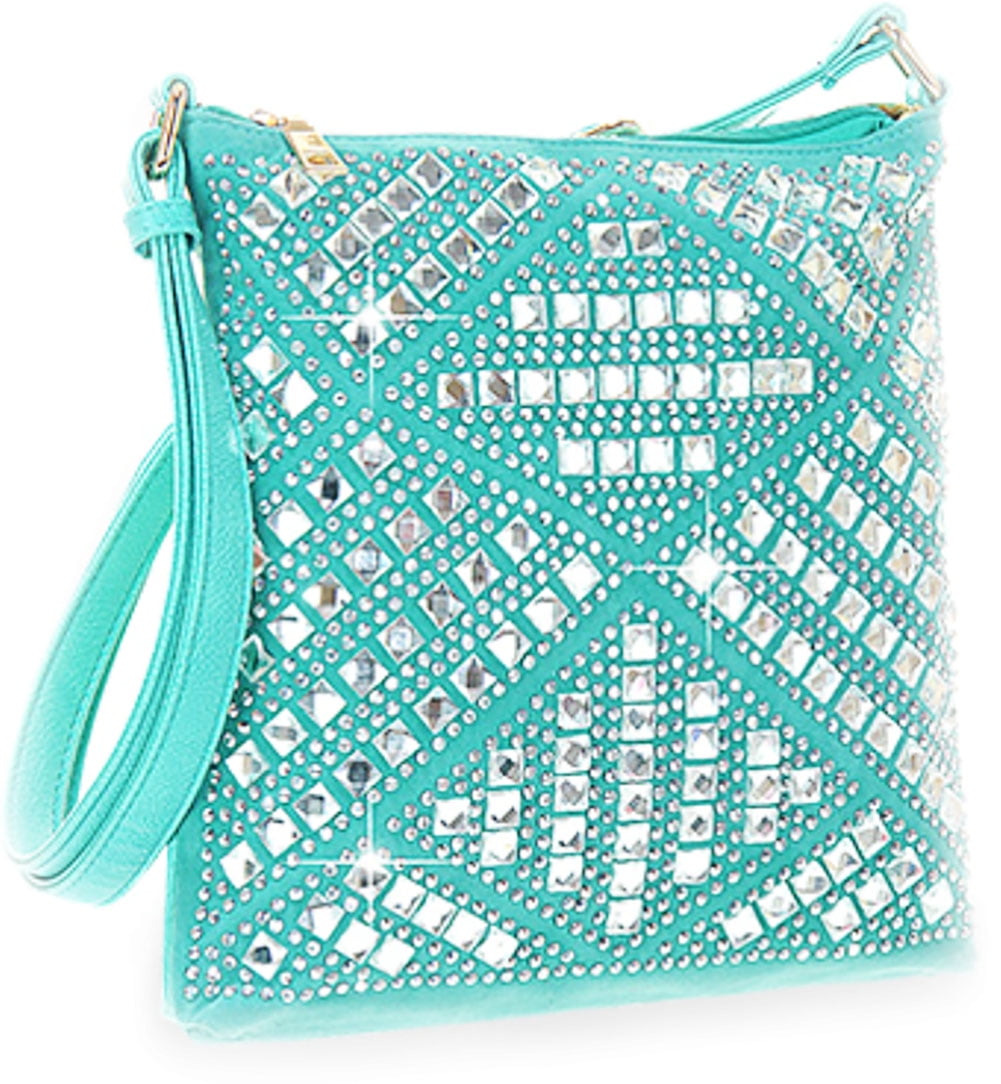 Zzfab Rhinestone Purse Gem Bling Crossbody Bag Turquoise
